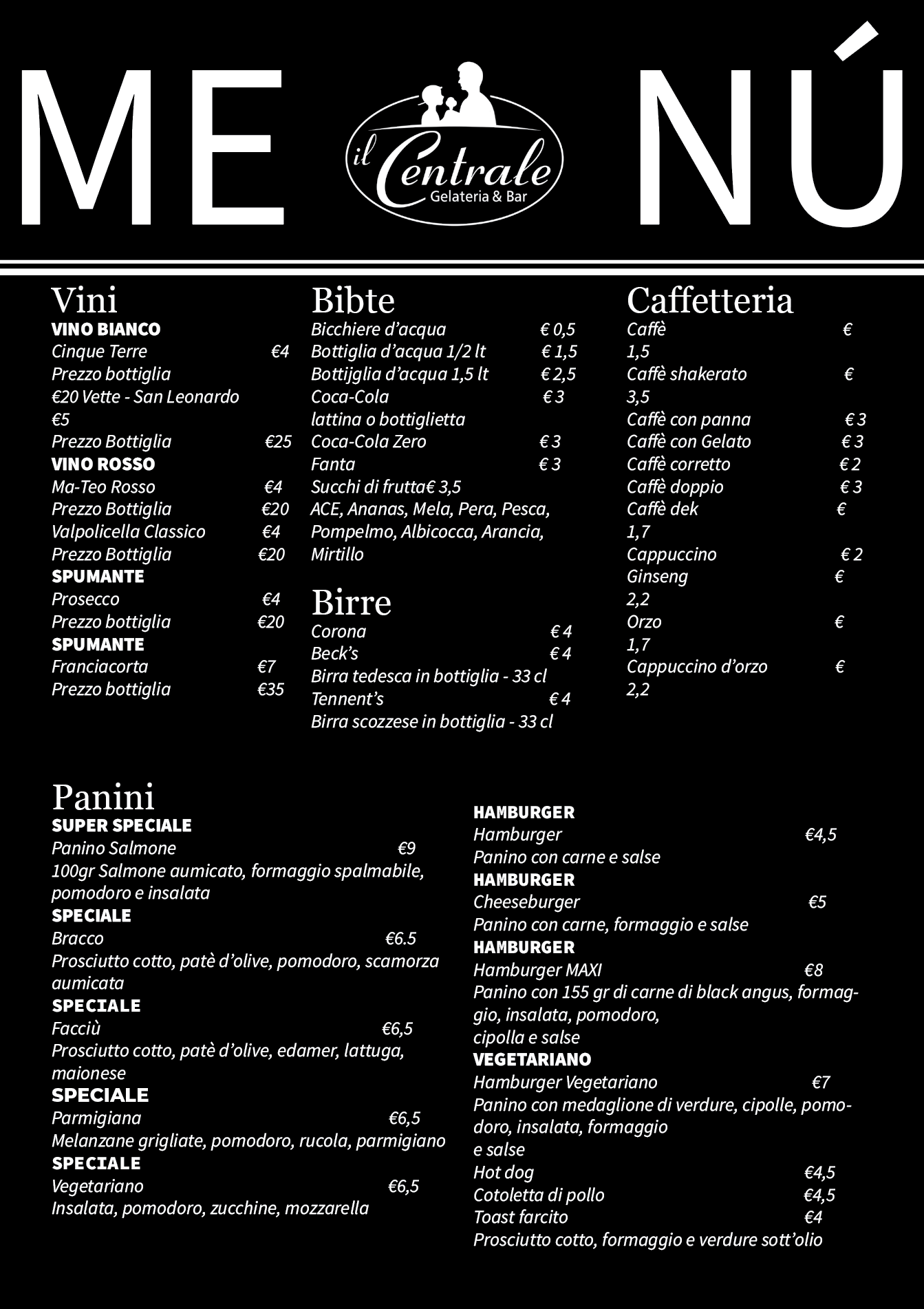 Questo progetto si basa sulla creazione e impaginazione di un menù moderno per un bar. La struttura si sviluppa utilizzando una struttura a tre colonne per i testi, sfruttando tutto lo spazio a disposizione; i colori e i font sono studiati per rendere leggibile e moderno il menù. Il lavoro è svolto in InDesign.